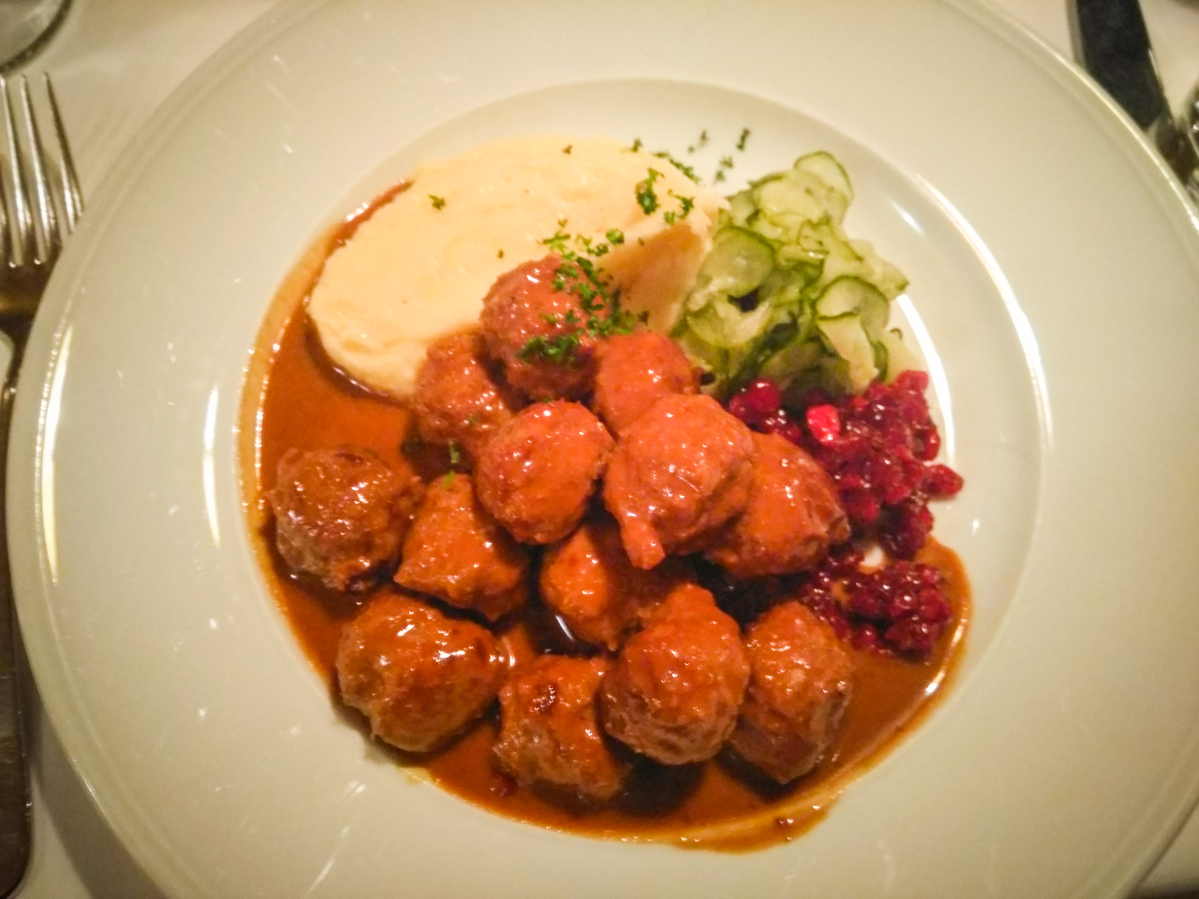 Traditional Swedish meatballs accompanied by Lingonerries and mashed Potato puree